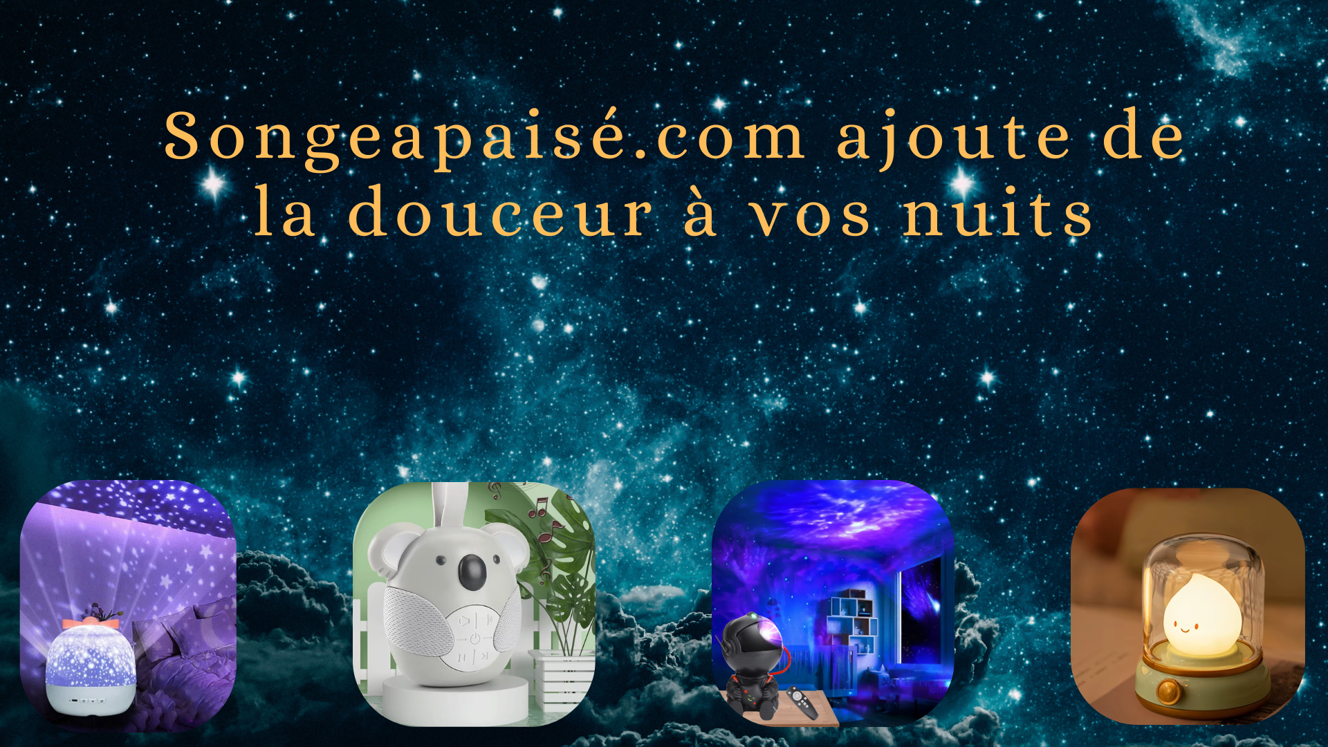 Chez Songeapaisé.com, nous croyons que le sommeil est un pilier essentiel du bien-être, aussi bien pour les enfants que pour les adultes. Notre mission va bien au-delà de la simple vente de veilleuses : nous souhaitons offrir des solutions lumineuses qui rassurent, apaisent et transforment chaque nuit en un moment de sérénité. Nos produits sont soigneusement sélectionnés pour répondre aux besoins de chaque foyer, en garantissant sécurité, qualité et innovation. Songeapaisé.com est né de cette volonté d’accompagner petits et grands vers des nuits plus douces, en créant un environnement propice au repos et aux rêves. Parce qu’une nuit paisible, c’est un réveil heureux et une journée plus lumineuse.