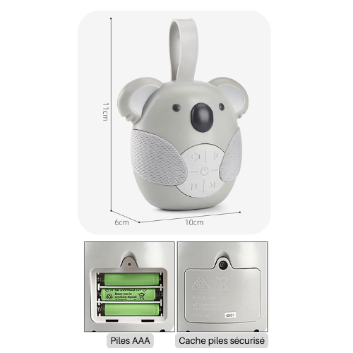 KoalaZen™ est conçue pour aider les bébés et jeunes enfants à trouver le sommeil plus rapidement grâce à une combinaison de sons blancs et mélodies apaisantes.