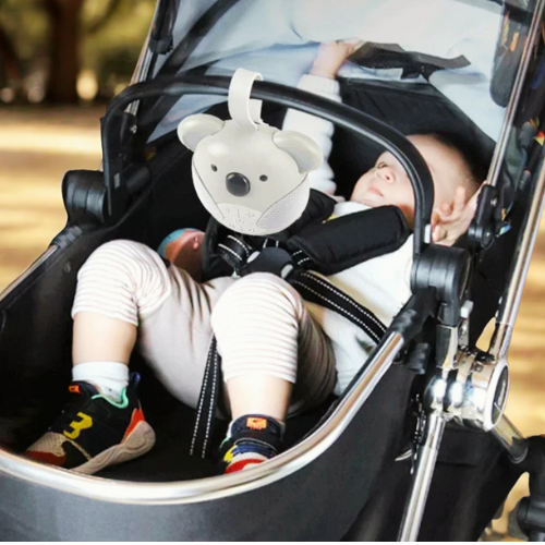 Avec son format compact (11×10×6 cm) et sa sangle en silicone intégrée, KoalaZen™ s’accroche facilement à une poussette, un lit parapluie ou un siège auto. Parfaite pour le sommeil en déplacement !
